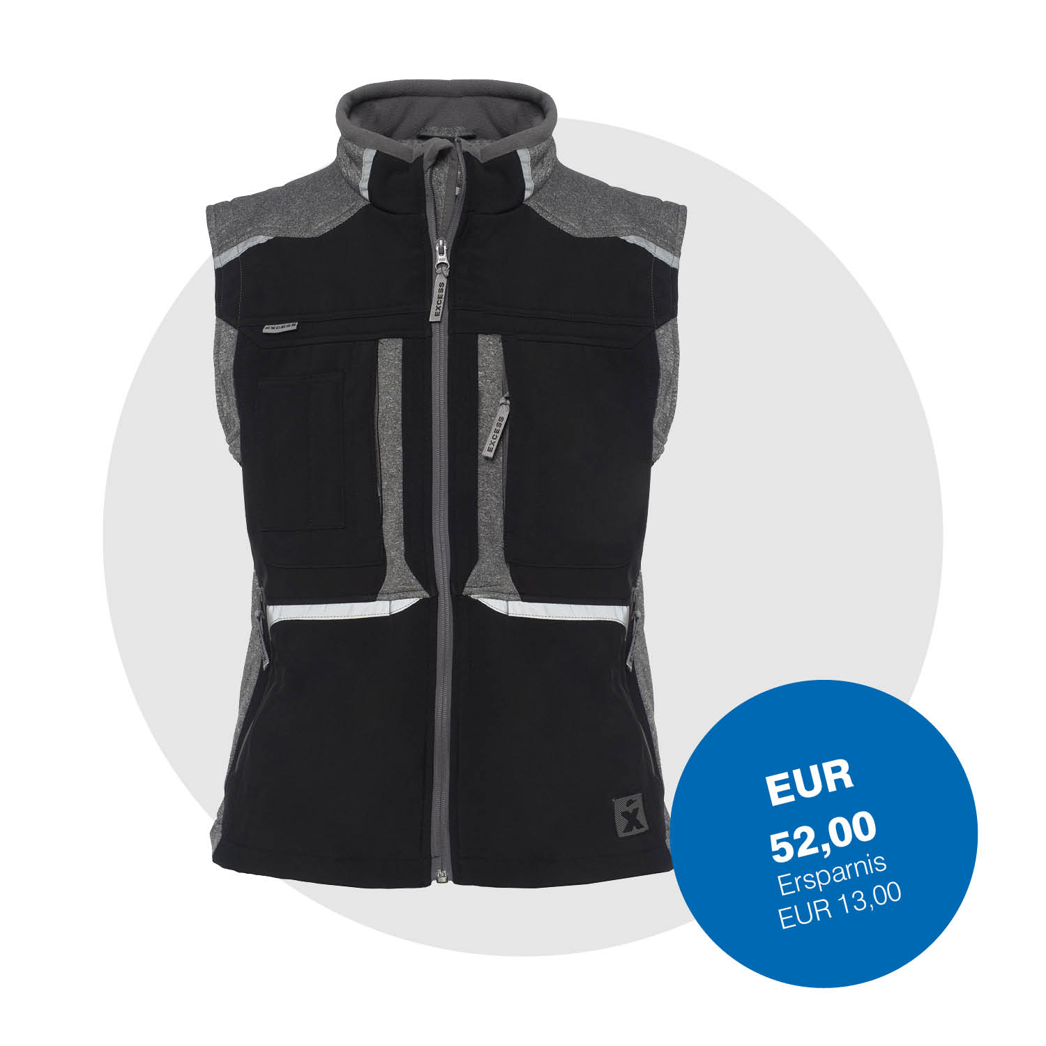 - Brusttasche und Seitentaschen mit Reißverschluss