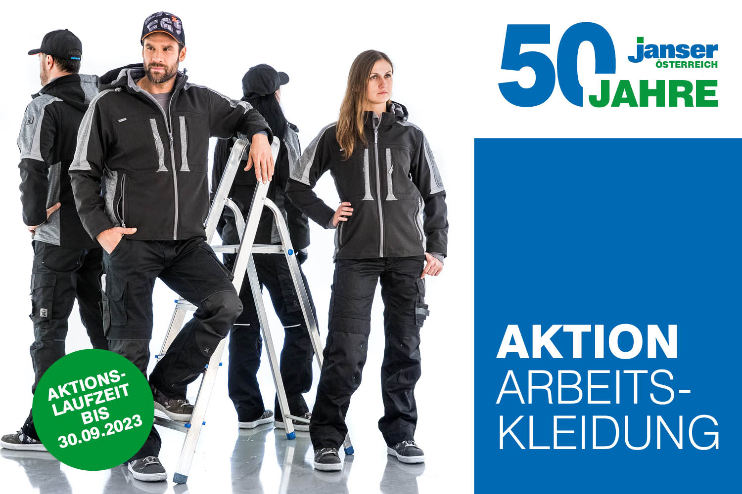 Seit 50 Jahren ist unser oberstes Ziel, den hohen Ansprüchen unserer Kunden und Partner gerecht zu werden und eine Zusammenarbeit auf Augenhöhe zu führen. Zum 50-jährigen-Jubiläum von JANSER ÖSTERREICH möchten wir Sie mit einer besonderen Aktion für ARBEITSKLEIDUNG überraschen!