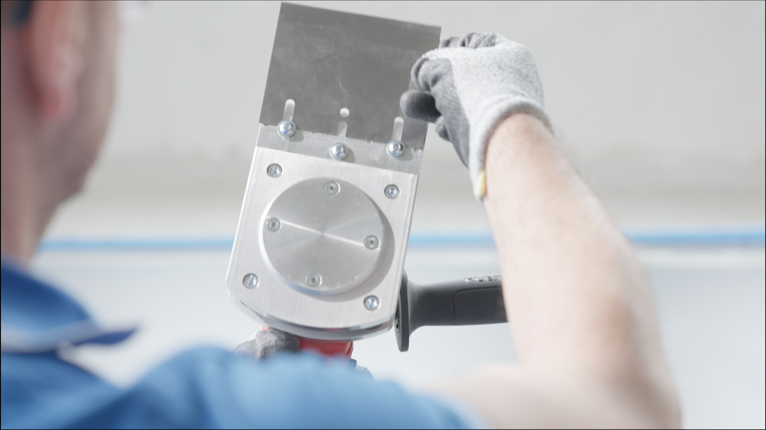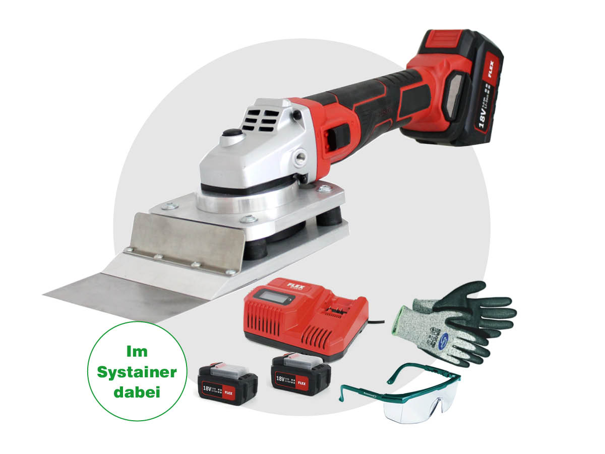 Ein handliches Akku Gerät zum Entfernen von Schaumbelägen und Kleberresten auf kleinen Flächen und an der Wand.